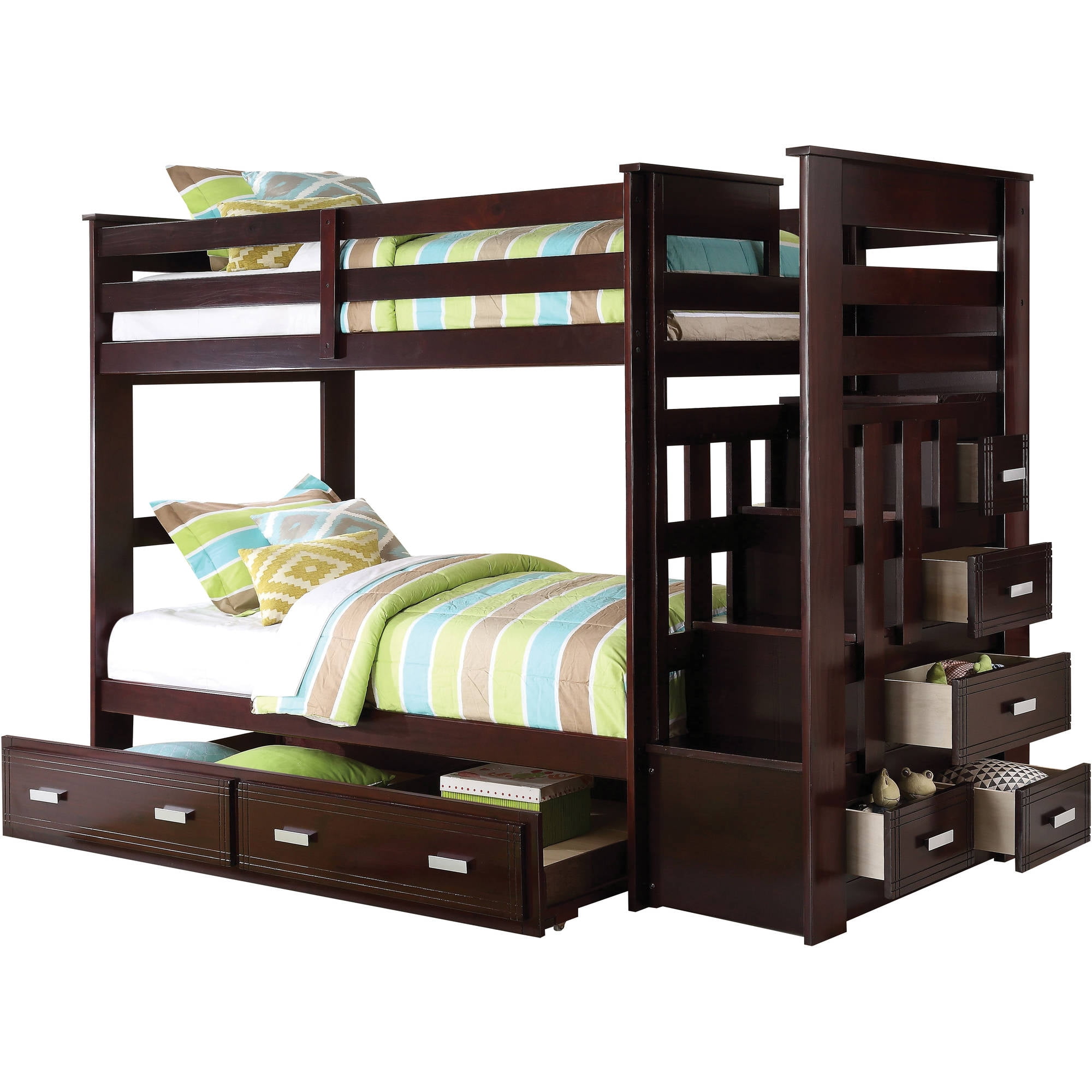 Acme Allentown Twin Over Twin Wood Bunk Bed With Storage Espresso
