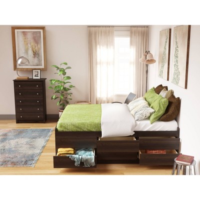 12 Drawers Captain S Tall Queen Platform Storage Bed Espresso
